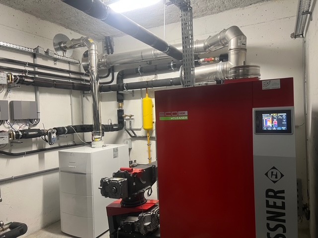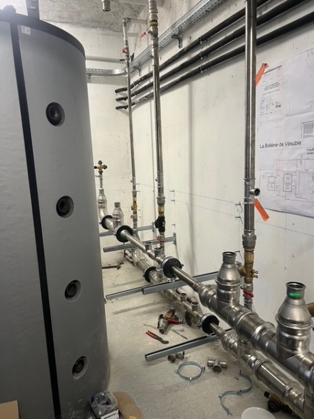 La chaudière à fuel non condensation est remplacée par une chaudière Hargassner à granulés pour la mairie de Saint Martin Vésubie.